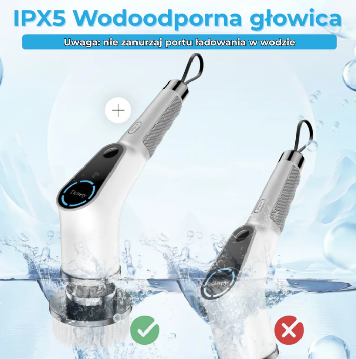 Nie. Końcówki obracają się automatycznie, dzięki czemu szczotka wykonuje całą ciężką pracę za użytkownika. Wystarczy lekko prowadzić ją po powierzchni — brak dociskania oznacza mniej zmęczenia i mniejsze ryzyko zarysowań.